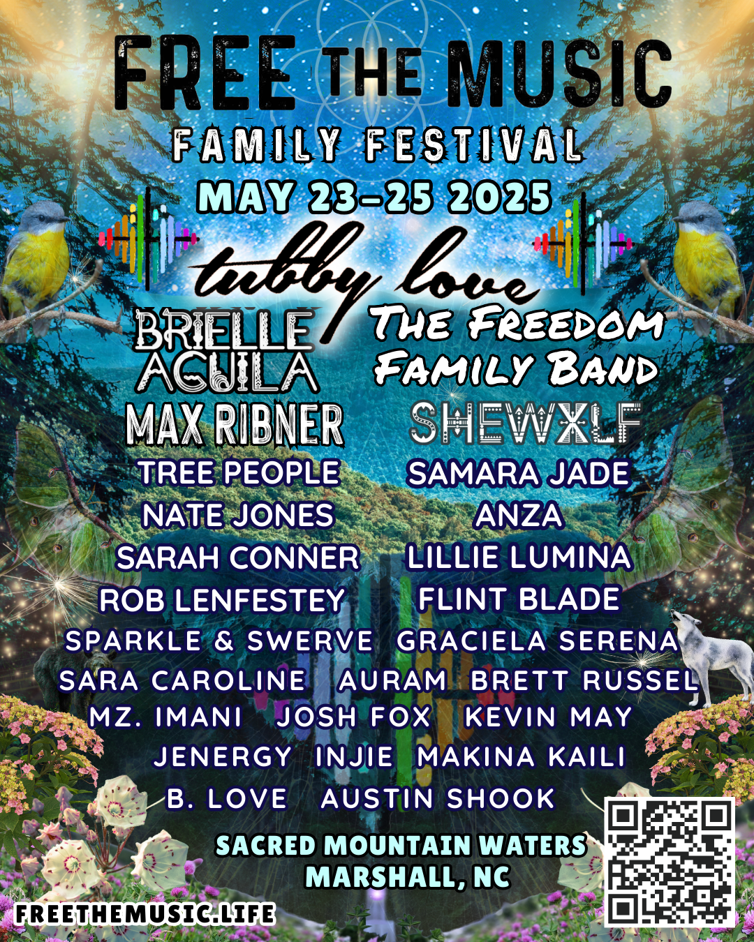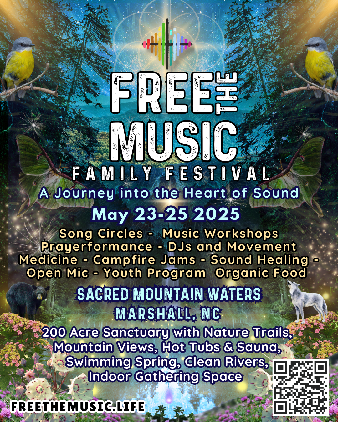 Nestled in the rolling hills of Marshall, North Carolina, Sacred Mountain Waters is a breathtaking sanctuary designed for deep connection, creativity, and rejuvenation. Surrounded by lush forests, mountain views, this sacred land offers a perfect blend of nature and luxury—providing the ideal setting for our Free The Music Family Festival!